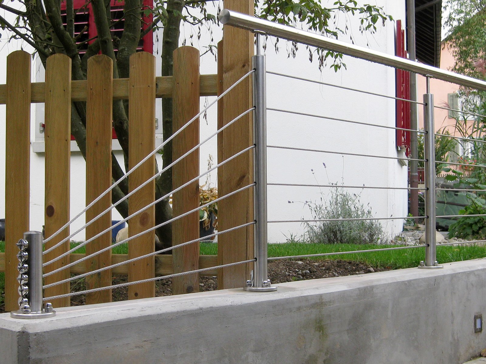 Edelstahlgeländer mit Stäben oder Stahlseilen