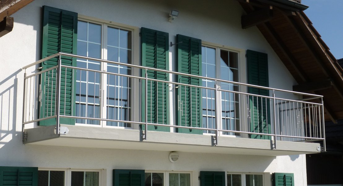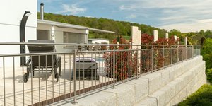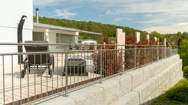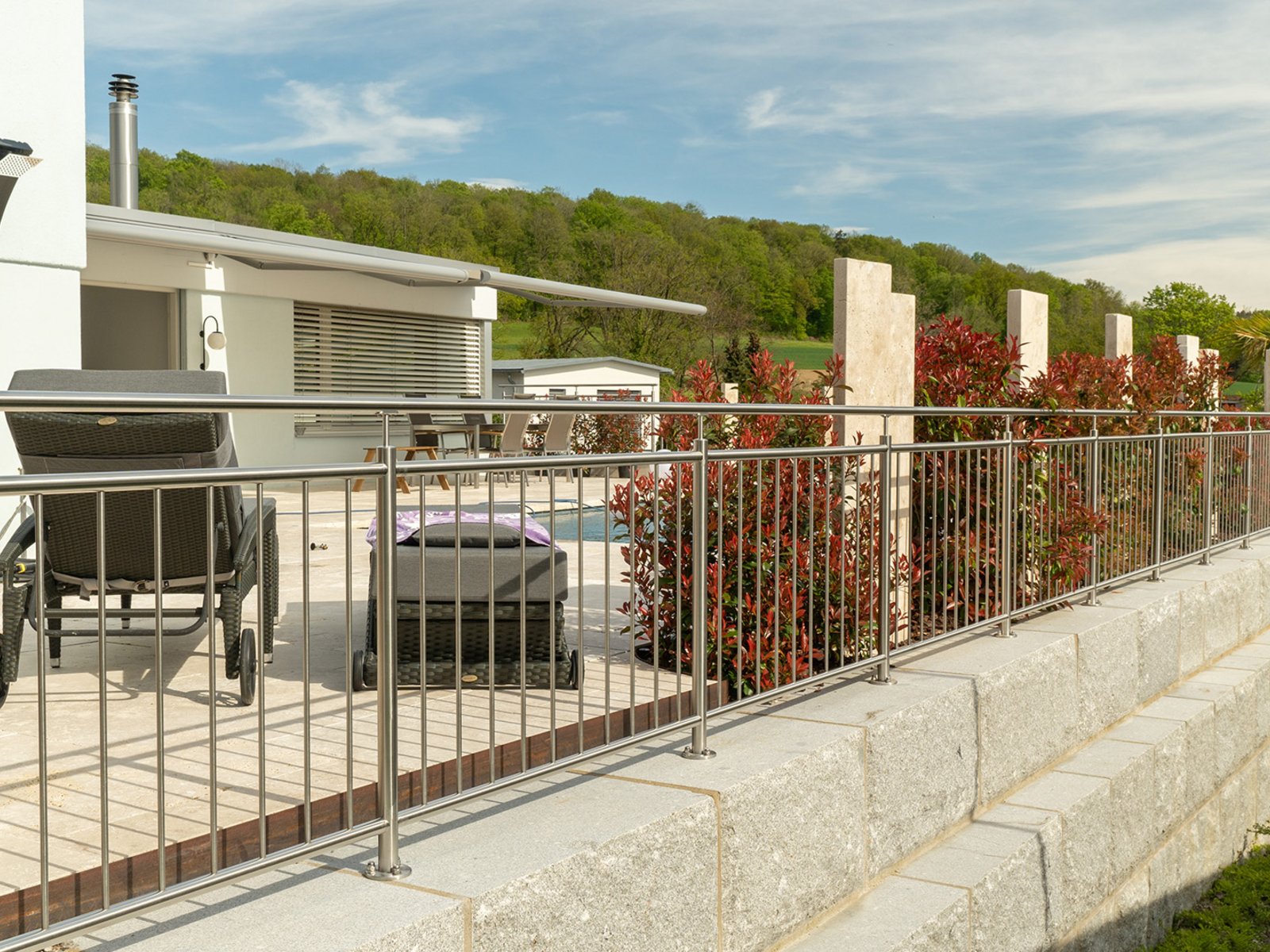 Edelstahlgeländer kombiniert mit einer Glasfüllung bieten eine praktische Lösung für Balkone und Terrassen.